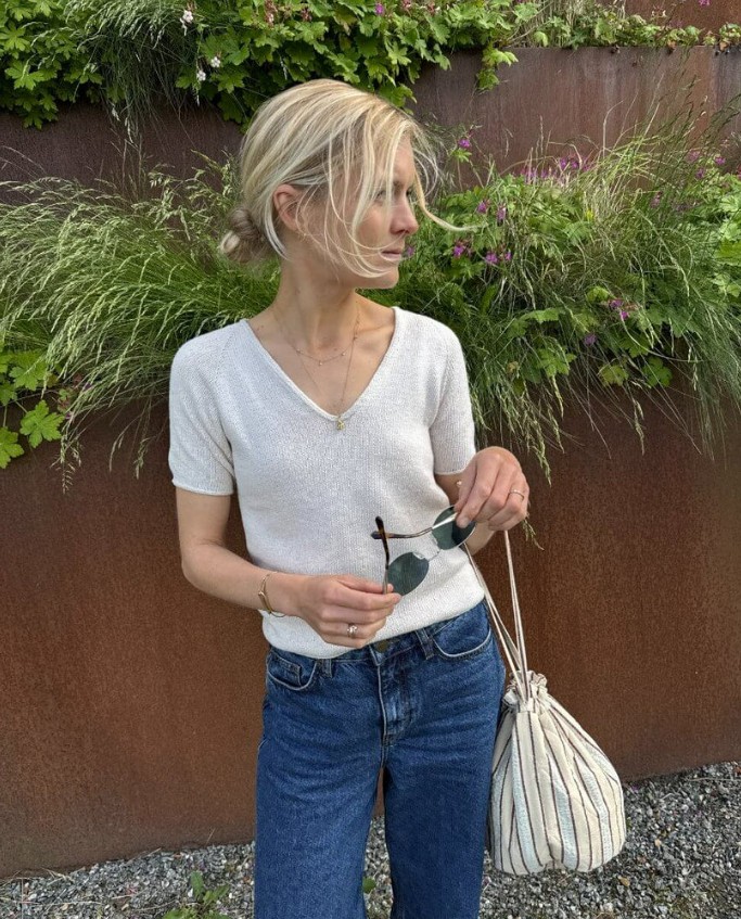Materials: 150-200 (200) 200 (200-250) 250 (250) 250 (300) 300 (300) g Tynn Line by Sandnes Garn (50 g = 220 m [240 yds]) or 150 (200) 200 (200-250) 250 (250) 250 (300) 300 (300) g Pure Silk by Knitting for Olive (50 g = 250 m [273 yds])
