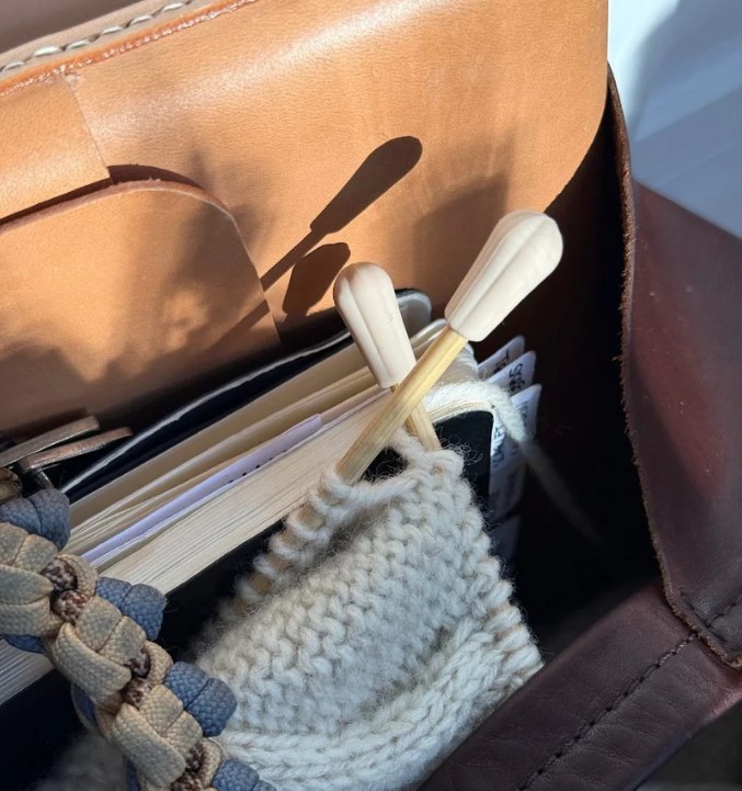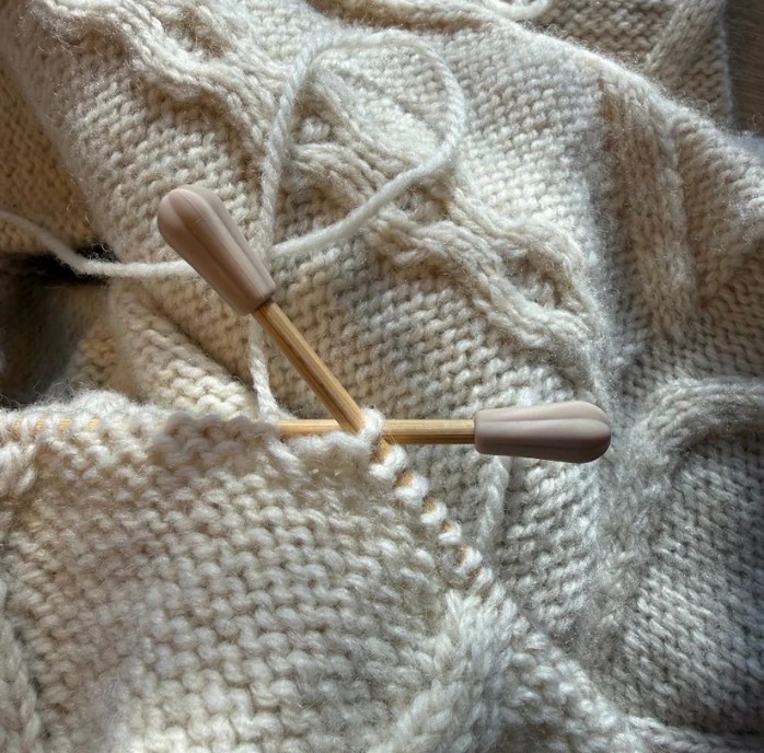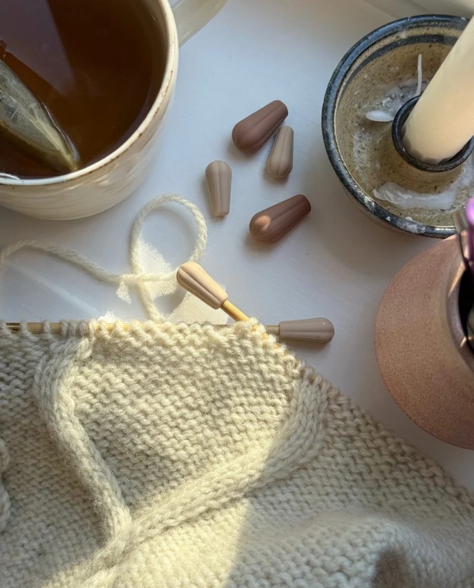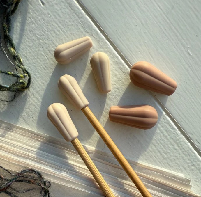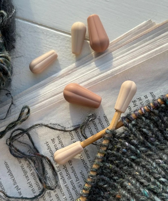 If you like taking your knitting with you wherever you go, you might find these point protectors from PetiteKnit handy to make sure the stitches are secure on your knitting needles.